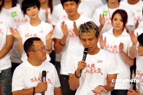 李克勤出席《眾志成城抗震救災》晚會為四川地震災民籌款。中新社發 武仲林 攝