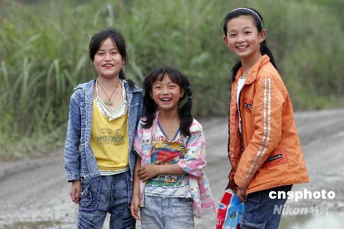 組圖:地震災區孩子漸露童真笑臉(5)