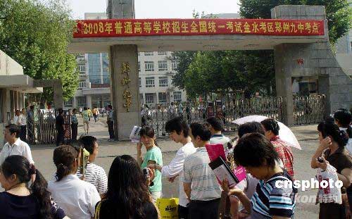 鄭州市一考點門前送子趕考的家長們越聚越多。當日,河南省參加高考的考生達九十八點八萬人,其中,普通高中畢業生九十點五萬人,其他類型考生八點三萬人,考生人數比去年多出約十一萬人,增長逾一成二。這一數字創下歷史新高,居全國之首。中新社發 李志全 攝