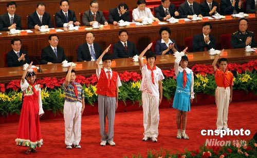 6月10日,共青團第十六次全國代表大會在北京人民大會堂舉行開幕式。黨和國家領導人胡錦濤等出席。中新社發 任海霞 攝