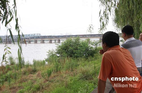 圖為上游堰塞湖帶來的洪水已安全通過寶成鐵路涪江大橋處,市民紛紛立足觀看。中新社發 黃榮 攝