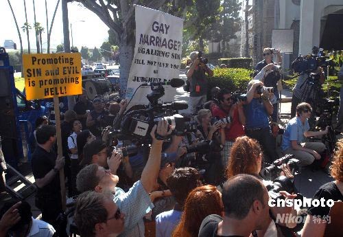 洛杉磯首個同性戀合法婚姻遭抗議