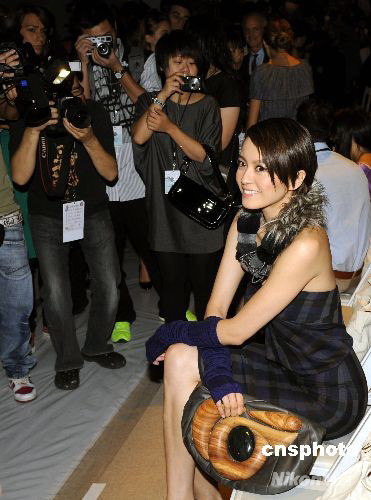 當地時間9月8日晚,在美國紐約市布萊恩特公園舉行的“2009紐約時裝周”上,香港明星梁詠琪,身著皮草圍脖搭配呢質小禮服,到場觀秀,成為紐約時裝周上一個亮點。中新社發 曹堂 攝