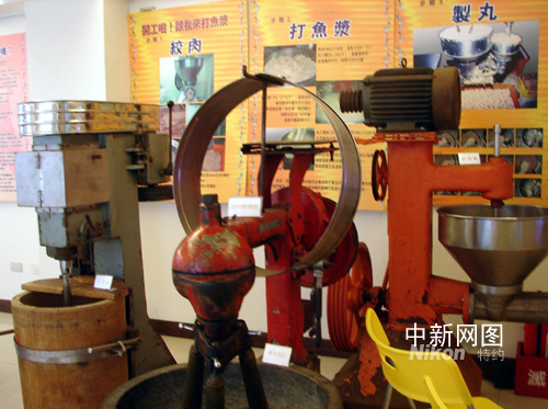 九月十五日,記者參觀臺(tái)北淡水老街,見有一座“登峰魚丸博物館”,里面擺有成套制作設(shè)備,墻上則有教你如何絞肉、打魚漿、制丸的示意圖。作者:曾福志