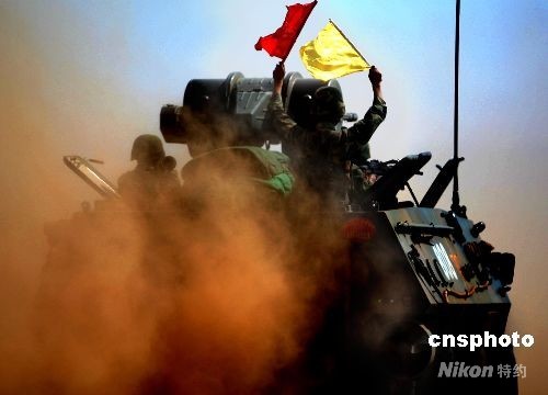 濟(jì)南軍區(qū)機(jī)械化步兵旅塞北大練兵。中新社發(fā) 宋吉河 攝