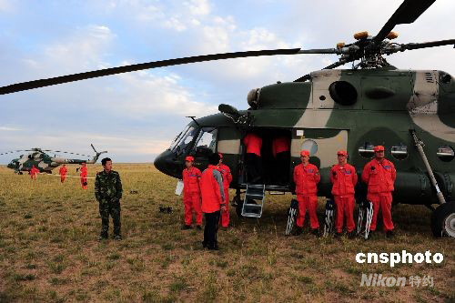 9月23日,參加“神七”返回艙搜救任務的人員在內蒙古主著陸場區進行最后一次搜救演練。 中新社發 周敬波 攝