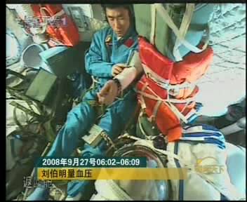 圖:神七航天員劉伯明量血壓