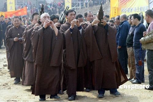 十月七日,少林寺下院--河南新密超化寺舉行大雄寶殿奠基法會,僧侶居士吹奏起“超化吹歌”,使今人又能聆聽到原汁原味的佛教梵樂。吹歌大約起源于中國四千多年前的夏商時期。中新社發 李志全 攝