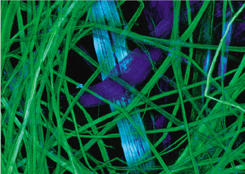 日本紙,查爾斯·卡茲勒克攝,放大100倍。圖片上展示的范圍比報紙上印刷的一個句號還小。拍攝技術:共焦。