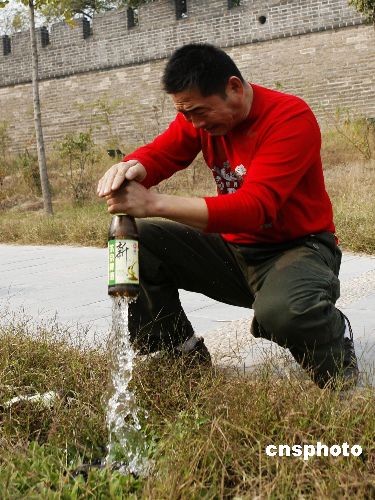民間藝人用“鐵砂掌”將啤酒瓶拍爆 瓶底破裂
