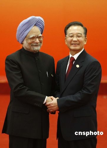 圖為溫家寶歡迎印度總理辛格。中新社發 盛佳鵬 攝