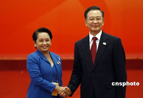 圖為溫家寶歡迎菲律賓總統阿羅約。中新社發 盛佳鵬 攝