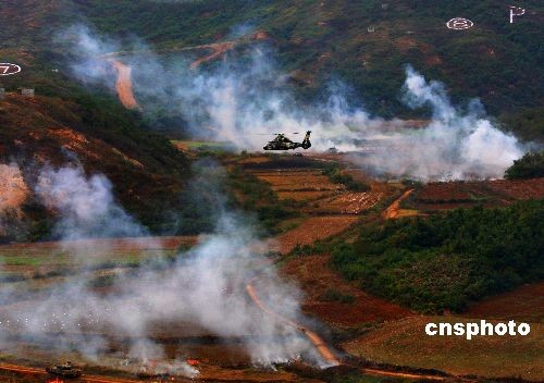 10月24至28日在確山合同戰術訓練基地,進行進行實兵、實彈訓練。中新社發 宋吉河 攝
