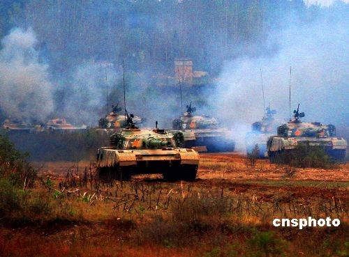 圖為裝甲部隊對目標實施火力打擊。中新社發 宋吉河 攝
