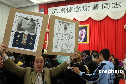 社會各界人士自發到場為一代電影大師送行。中新社發 湯彥俊 攝