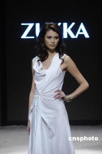 2008年10月31日,2009ZUKKA春夏時裝發布會在上海浦東鄂爾多斯國際大廈15Space創意園舉行。著名模特王文琴領銜走秀。ZUKKA整場發布會以“溫度”為主題,呼吁大家多關注我們人類共同的生存環境,關愛我們的地球。中新社發 董鴻景 攝