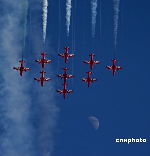 11月6日,印度空軍“陽(yáng)光”飛行表演隊(duì)的9架飛機(jī)在第七屆珠海“航展”上為觀眾作了數(shù)十個(gè)飛行科目表演。中新社發(fā) 譚超 攝