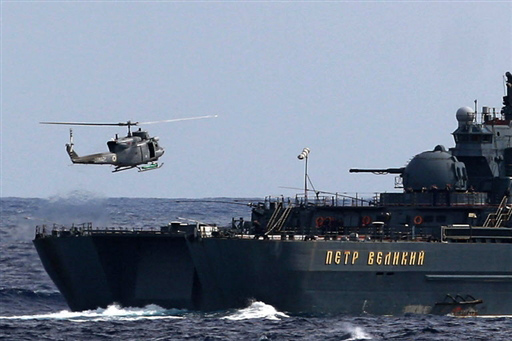 12月2日,在委內(nèi)瑞拉境內(nèi)的加勒比海域,俄羅斯“恰巴年科海軍上將”號(hào)大型反潛艦與“彼得大帝”號(hào)核動(dòng)力導(dǎo)彈巡洋艦參加委內(nèi)瑞拉和俄羅斯舉行的海上聯(lián)合軍演。 委俄兩國于12月1日至3日在加勒比海舉行代號(hào)為“委俄2008”的聯(lián)合軍事演習(xí)。