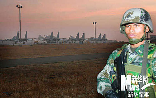 我們的IL-76運輸機就停在這些蘇-30戰(zhàn)斗機旁邊。新華軍事記者 李剛 攝