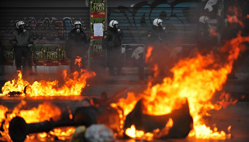 圖:希臘騷亂升級 雅典恍如“戰場”