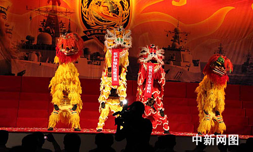 “廣州”艦官兵表演文藝節目為遠洋護航壯行