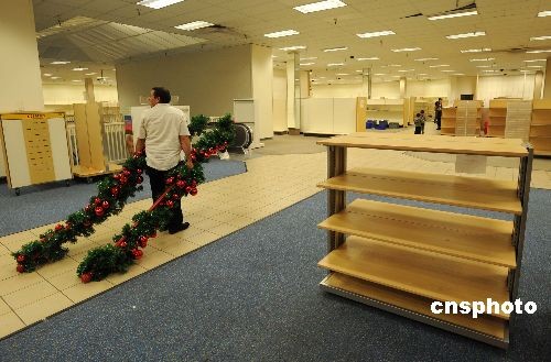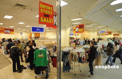 當地時間十二月二十七日,洛杉磯附近的一家Mervyns百貨店進入破產關門前的最后一天大甩賣,全場商品一律一折甩賣,連貨架也在甩賣之列,眾多消費者前來撿便宜。受美國經濟衰退的影響,擁有五十九年歷史的美國老牌連鎖百貨公司Mervyns今年夏天宣布破產倒閉,由于沒有找到接手的公司,最終該公司宣布旗下一百四十九家商店進行清貨銷售,然后關門停業。中新社發 張煒 攝