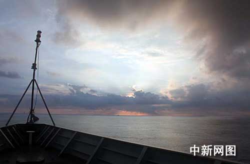 護航途中絢麗晚霞。中新社記者 孫自法 攝
