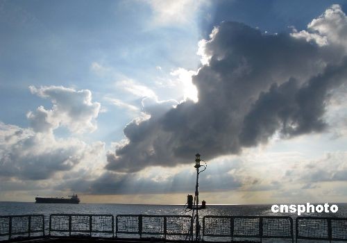 圖為在“海口”艦尾甲板所拍攝的陽光與烏云交相輝映的壯美觀景。中新社發 孫自法 攝