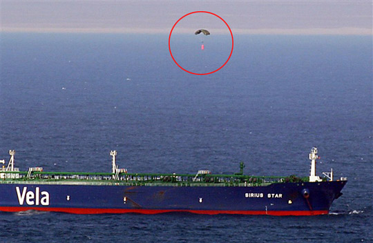 美國海軍的監(jiān)測部門指出,沙特超級油輪“天狼星號”在被挾持近兩個月后,9日有一架小飛機突然飛越船只上空,并丟下帶有降落傘的“包裹”,而這個包裹應(yīng)該就是用來贖人的300萬美元。根據(jù)各方信息,索馬里海盜在確認接收贖款后,已經(jīng)釋放25名船員,讓油輪駛離索中部的哈拉赫里港。
