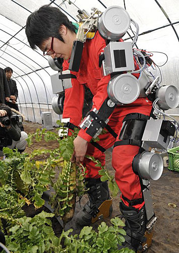 能“附體”的機(jī)器人:日本研究人員成功發(fā)明了一種幫助人們從事體力勞動(dòng)的特殊服裝。穿上這種由電子機(jī)械設(shè)備組裝而成的“衣服”,人在勞動(dòng)時(shí)仿佛多了一個(gè)機(jī)器人幫手,就像在人體上附上了一個(gè)機(jī)器人。