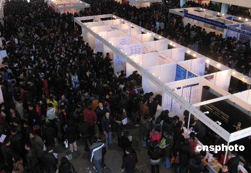 2月7日,一年一度的北京最大規模招聘盛會——“北京‘共創未來’大型人才招聘會”在中國國際展覽中心舉行。本次大會由北京多家人才聯合主辦,設立展位近千個,展會開放四個展館,2號館為IT、電子、通訊專館,3號館為建筑房地產、現代制造業、生物醫藥及廣告傳媒專館,4號館、8B號館為綜合招聘館。在京10萬高校畢業生前往應聘。