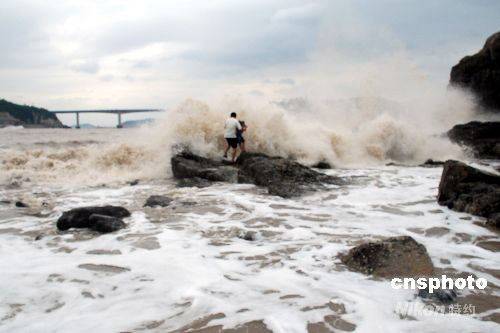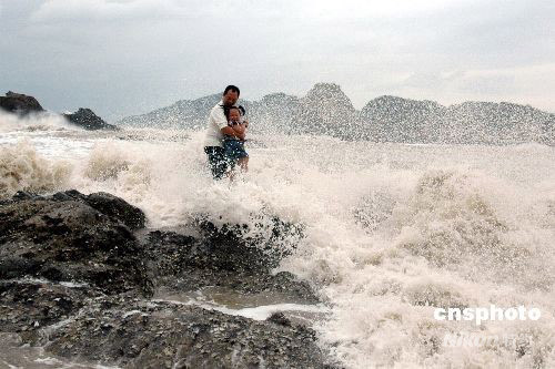 08年9月28日,受超強臺風“薔薇”影響,浙江溫州市洞頭島海域已是波濤洶涌,海礁上掀起的巨浪高達10多米。下午2時許,一對外地父女在海邊游玩時不慎被突漲的潮水困在礁石上,隨時可能被海浪吞噬。正在海邊巡邏的洞頭邊防大隊官兵發現險情后,迅速展開緊急營救,成功將父女從海浪中安全救上岸。