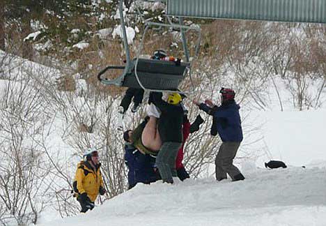 1月6日,美國科羅拉多一處滑雪場日前上演了一出尷尬場面。一名男子在上纜車時,因座椅故障,整個人頭朝下翻轉(zhuǎn)了下來,所幸他的雪橇將他卡在纜車上,沒有掉下來。但是令人尷尬的是,他的褲子被扯下來,整個下半身暴露在冰雪寒風(fēng)中,直到15分鐘后才有工作人員將他救下來。