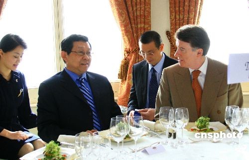 圖:陳德銘與英商業(yè)大臣曼德爾森共進(jìn)午餐