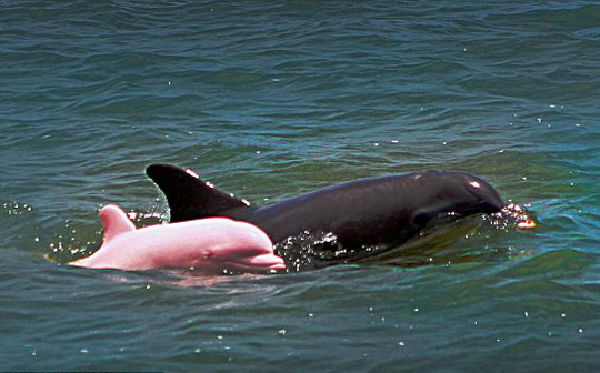 中新網3月3日電 據英國媒體報道,近日有人拍攝到了一組罕見的粉紅色海豚在水中嬉戲的畫面。拍攝地點是在美國路易斯安那州的加爾卡修湖,拍攝者是當地的一名船長,他說這只粉紅色的小寬吻海豚甚至還擁有淡紅色的眼睛。這只海豚也可能是世界上唯一一只粉紅色的寬吻海豚。