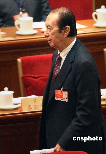 3月3日下午,全國政協十一屆二次會議在北京人民大會堂開幕,大會主席團成員、全國政協委員何鴻燊走上主席臺。中新社發 任晨鳴 攝