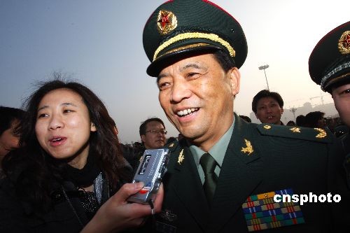 3月5日,第十一屆全國人大二次會議開幕會在北京人民大會堂隆重舉行。圖為解放軍代表舒玉泰在會前接受記者采訪。 中新社發(fā) 李松 攝