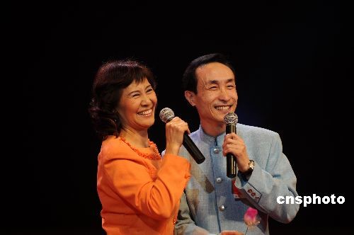 全國政協委員、著名小品演員鞏漢林夫婦表演小品。中新社發 宋健浩 攝