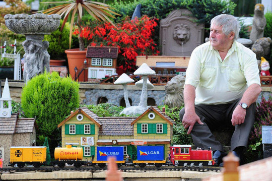 英一老漢癡迷火車 花園中造“鐵路樂園”。現年68歲的艾里克·馬歇爾從小對鐵路著迷,自從參觀了一個火車模型展覽之后,他別出心裁地將自家花園改造成一個“模型鐵路樂園”。令人嘆為觀止的是,里面從鐵軌、隧道、高橋、纜車到站臺、噴泉、房屋一應俱全,全都是艾里克一手打造而成。