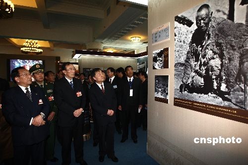 3月8日,參加全國人大的西藏團(tuán)代表參觀在北京民族宮舉辦的西藏民主改革50年大型展覽。西藏自治區(qū)人大常委會主任列確(前排左)、西藏自治區(qū)主席向巴平措(前排中)等參觀展覽。中新社發(fā) 杜洋 攝