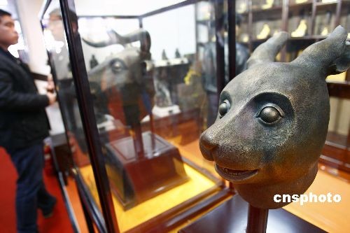 3月9日,第十九屆北京國際禮品工藝品暨家用精品展會在北京國際貿(mào)易中心開幕。本屆展會總面積達15000平方米,共有800多個展位,匯集了700多家參展商,適合不同人群的需求,讓市民可以體驗一站式采購的服務(wù)。圖為“圓明園十二生肖獸首”--卯兔(仿制)亮相禮品展吸引不少市民的目光。中新社發(fā) 鄭雄增 攝