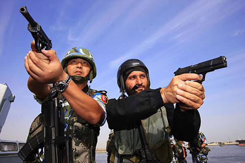 “和平—09”多國海上聯合軍演3月6日在巴基斯坦南部海濱城市卡拉奇拉開帷幕。來自中國、美國、英國、法國、澳大利亞、日本、巴基斯坦、孟加拉國、馬來西亞、科威特、尼日利亞和土耳其等12個國家的海軍參加這次多國海上聯合軍演。