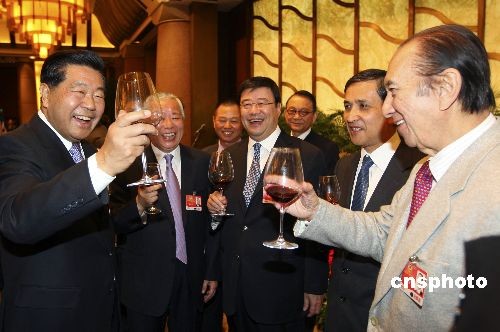 圖:賈慶林向港澳地區全國政協委員敬酒