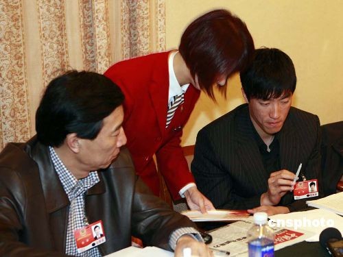 2009年3月11日,全國政協委員劉翔在京出席全國政協會議分組討論。圖為劉翔出席政協會議分組討論。中新社發 吳思強 攝