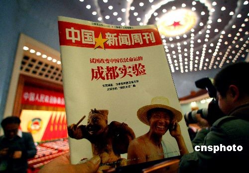 3月3日至13日,全國(guó)“兩會(huì)”在北京人民大會(huì)堂召開,與會(huì)人員在會(huì)前關(guān)注《中國(guó)新聞周刊》。中新社發(fā) 宋吉河 攝