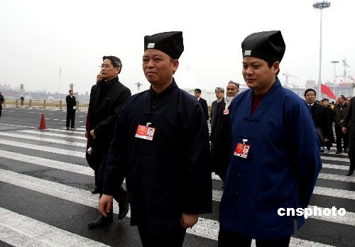 3月12日,全國政協十一屆二次會議舉行閉幕大會,宗教界委員步入會場。中新社發 傅丹丹 攝