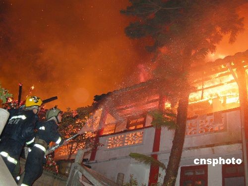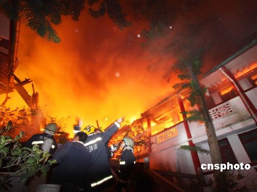 消防官兵奮力撲救火災。 中新社發 唐海波 攝