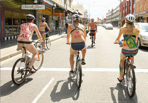 圖:彩繪、樹皮遮體蹬車 裸體自行車賽呼吁環(huán)保(4)