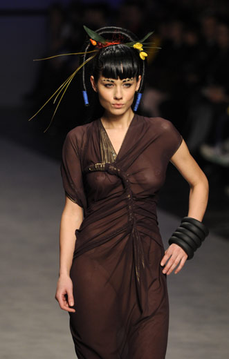 3月16日,模特在烏克蘭首都基輔舉行的時裝周上展示造型奇麗的發型設計。