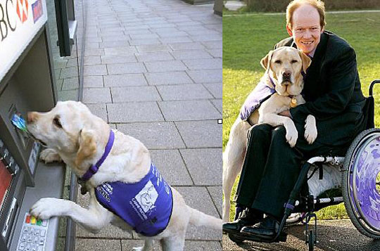 拉布拉多犬車禍救主人 會用ATM機。據英國媒體3月14日的報道,在英國漢普郡,前皇家海軍官員艾倫□帕頓同一只拉布拉多犬生活了近12年。這只拉布拉多犬不僅在一場車禍中挽救了主人帕頓的性命,而且還是一位幫他做家務的好手。據悉,這只拉布拉多犬名叫昂德(Endal)。在日常生活中,它會認真幫助主人做家務,如清空洗衣機中的衣服和前往商店購物。在主人的調教下,拉布拉多犬昂德還會熟練操作自動取款機取出固定數額的錢,郵寄信件,以及遞送手機。
